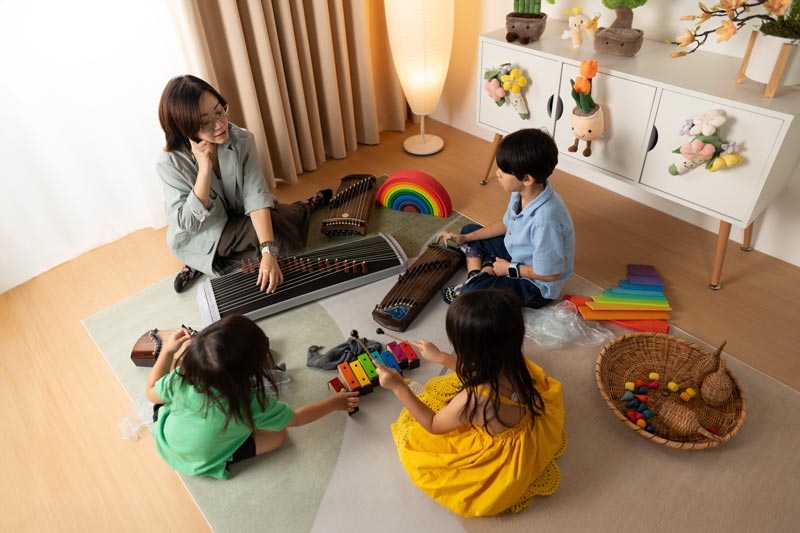 Rather than teaching music as a set of techniques at this young age, we would like to invite your children into a fun, gentle, immersive relationship with sound—through listening, exploration, movement, and creative expression, using the guzheng as a central sonic material. Though the aim of this programme is not to teach your child how to play the guzheng in the traditional sense, it serves as a stepping stone to uncover your child’s true musical potential and to discover the musical genius within.